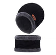 Unisex Beanie Wool Cap with Neck Warmer - Black